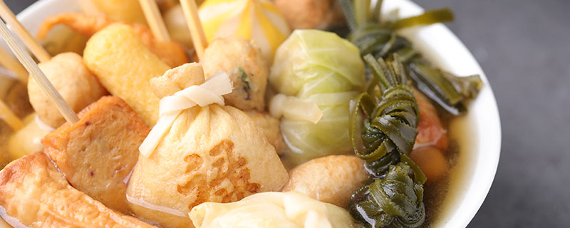 关东煮食材有:白萝卜、土豆、鲟鱼肉卷、豆腐、鳕鱼板、鱼板、小贡丸、黑轮、油豆腐、脆丸、铁板花枝、鱼豆腐、高丽菜卷、龙虾棒、黄金鱼丸、喷鼻菇、炸花枝丸、猪血糕、鳕鱼丸、干贝串、海苔花枝丸、章鱼烧、花枝烧、和风培根棒等。