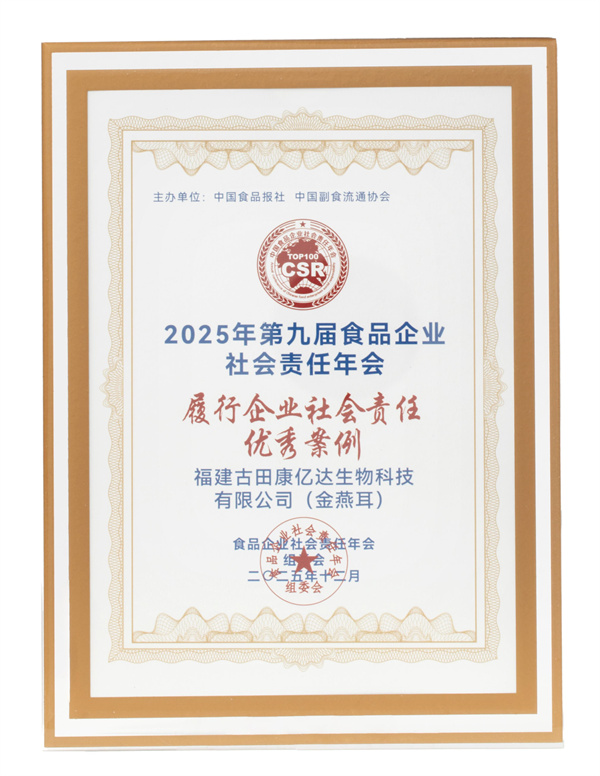 扫描或点击关心中金正在线日,——由《中国食物》从办的第九届食物企业社会义务年会今日正在京举行。本届年会以“义务担任,赋能企业成长”为从题,聚焦食物行业的焦点义务取可持续成长径。会上,银耳品牌金燕耳凭仗其建立的贯穿全财产链的食物平安办理系统,以及正在鞭策品类升级、帮力村落复兴方面的分析实践,被授予 “社会义务标杆实践企业” 项。