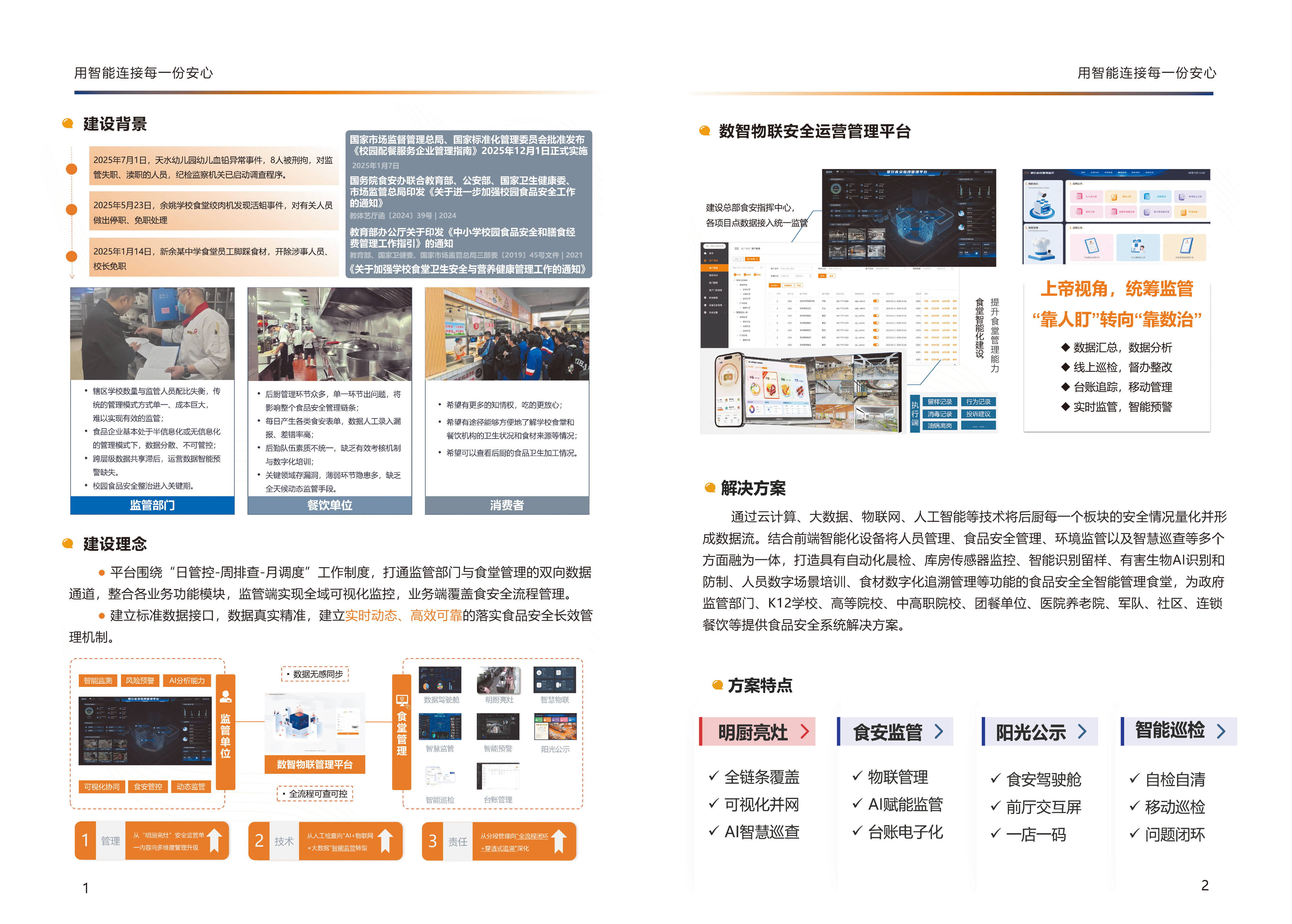 数字食安聪慧监管平台具有显著的行业劣势。保守的食物平安监管模式存正在着消息不及时、数据不精确、监管效率差劲等问题。而数字食安聪慧监管平台通过消息化手段,实现了对食物平安的及时监测、精准办理和高效监管。它可以或许整合各类食物平安数据,包罗食物出产、加工、畅通、消费等各个环节的消息,为监管部分供给全面、精确的决策根据。提高监管的协同性和无效性。