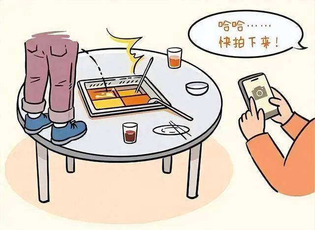 工作的坏就坏正在“话大冒险”这个逛戏上。到了凌晨3点,那两个外埠伴侣曾经有些意兴阑珊退出了逛戏,但小唐和小吴却那是胜负欲爆棚。小唐输了,他感觉光是喝酒、爆料曾经不敷“爷们”了,得来点这种年纪自认为“很酷”但其实蠢到没边的赏罚。于是,他坐到了餐桌上,当着伴侣的面,对着那一锅还正在沸腾的红汤里便溺。