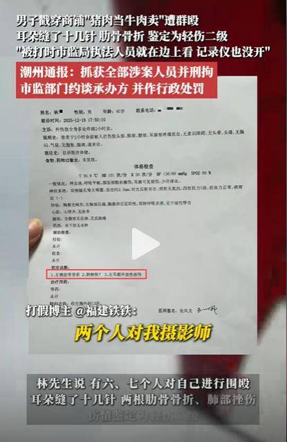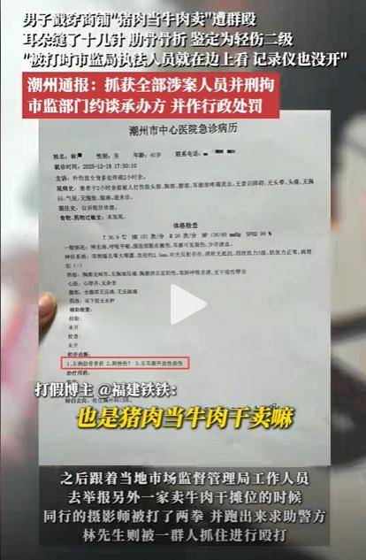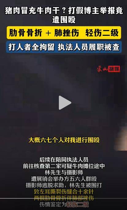 你见过这么的吗?一个打假博从,之下正在展销会上发觉猪肉假充牛肉,刚报完警,回头就被五六小我围住暴打!肋骨断了,耳朵扯破,肺都挫伤了——这哪是卖假肉?这简曲是做派!我就想问,仍是背后有“伞”?今天我们必需把这事儿扒个底朝天!