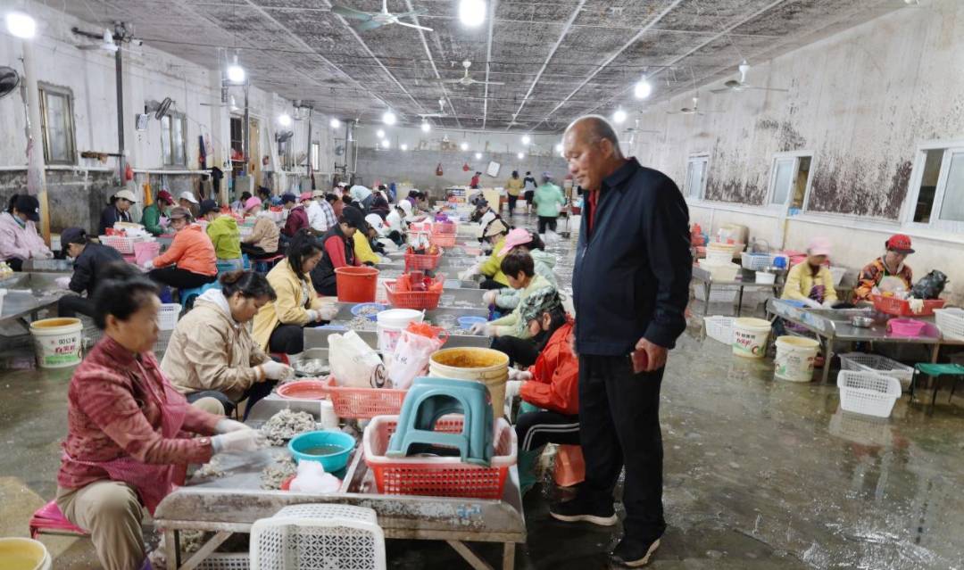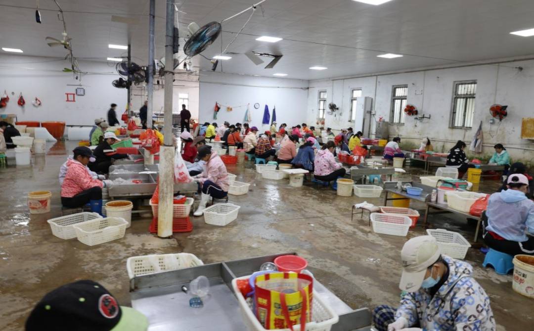 现在的伟信水产物加工场,已成长成为占地41亩的规模化企业——通过租赁镇18亩地盘、村委会23亩地盘,建成十个尺度化出产车间。为本地群众搭建起广漠的就业平台,现有合同工73人、姑且工1183人,加工旺季加班人员可达918人,不只处理了本地苍生、学生的就业需求,更向残疾人、贫苦户等群体伸出援手,让他们正在口就能捧起“稳稳的饭碗”。“做为一名,就是要专心致志,做到不忘初心、服膺。”陈南春的话语俭朴而果断。